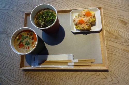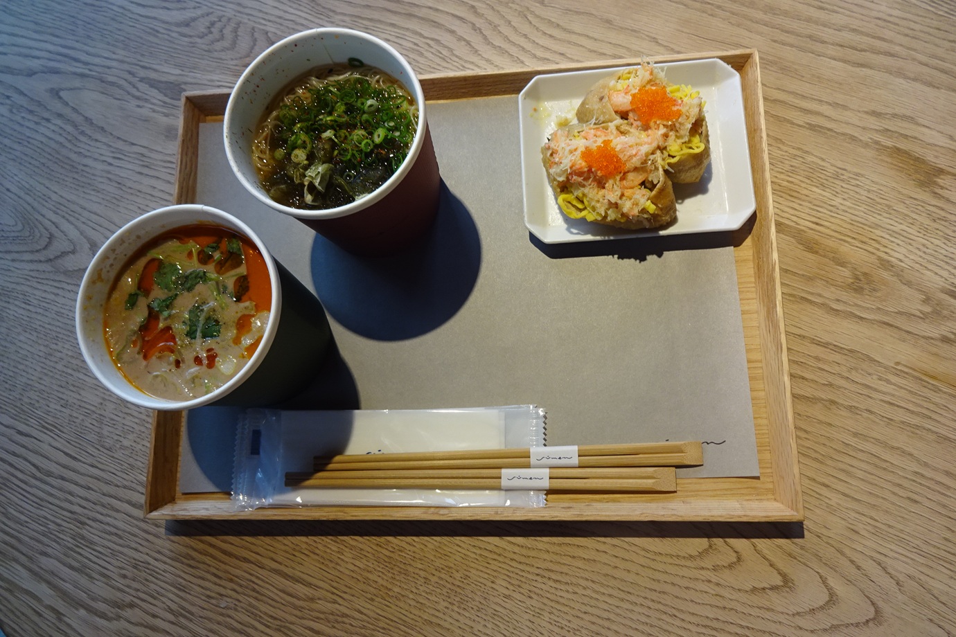 煮麺は、おしゃれな紙コップに入って提供されます。